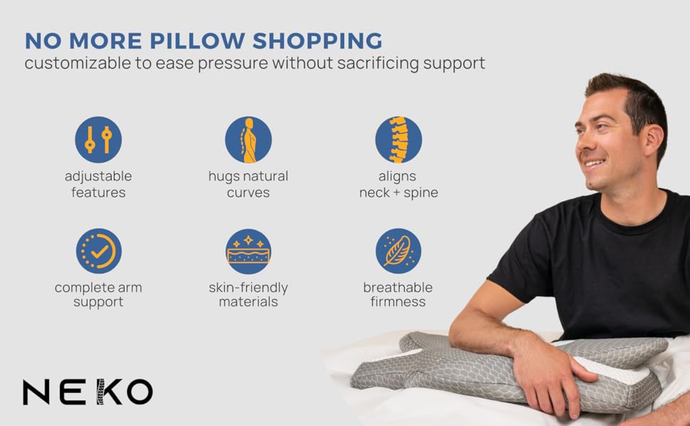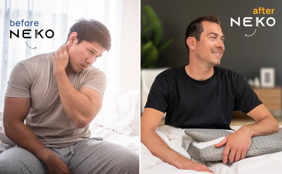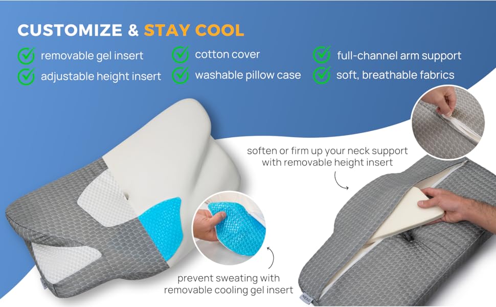 The pad’s unique slope, angled grooves, and multiple heights allow for instant customization, so you can change positions and always feel perfectly supported whether you sleep on your back, side, or stomach. And with our extra breathable pillowcase and bonus removable cooling gel insert, you’ll never wake up all hot and sweaty. From precision neck support to skin-friendly fabric, we’ve covered every base to ensure the ultimate night’s rest. Experience it for yourself—add a Neko Cervical Pillow to your cart today!